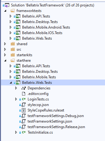 - Open the BellatrixLoginTest.cs file. There you will find a sample test automating the login.